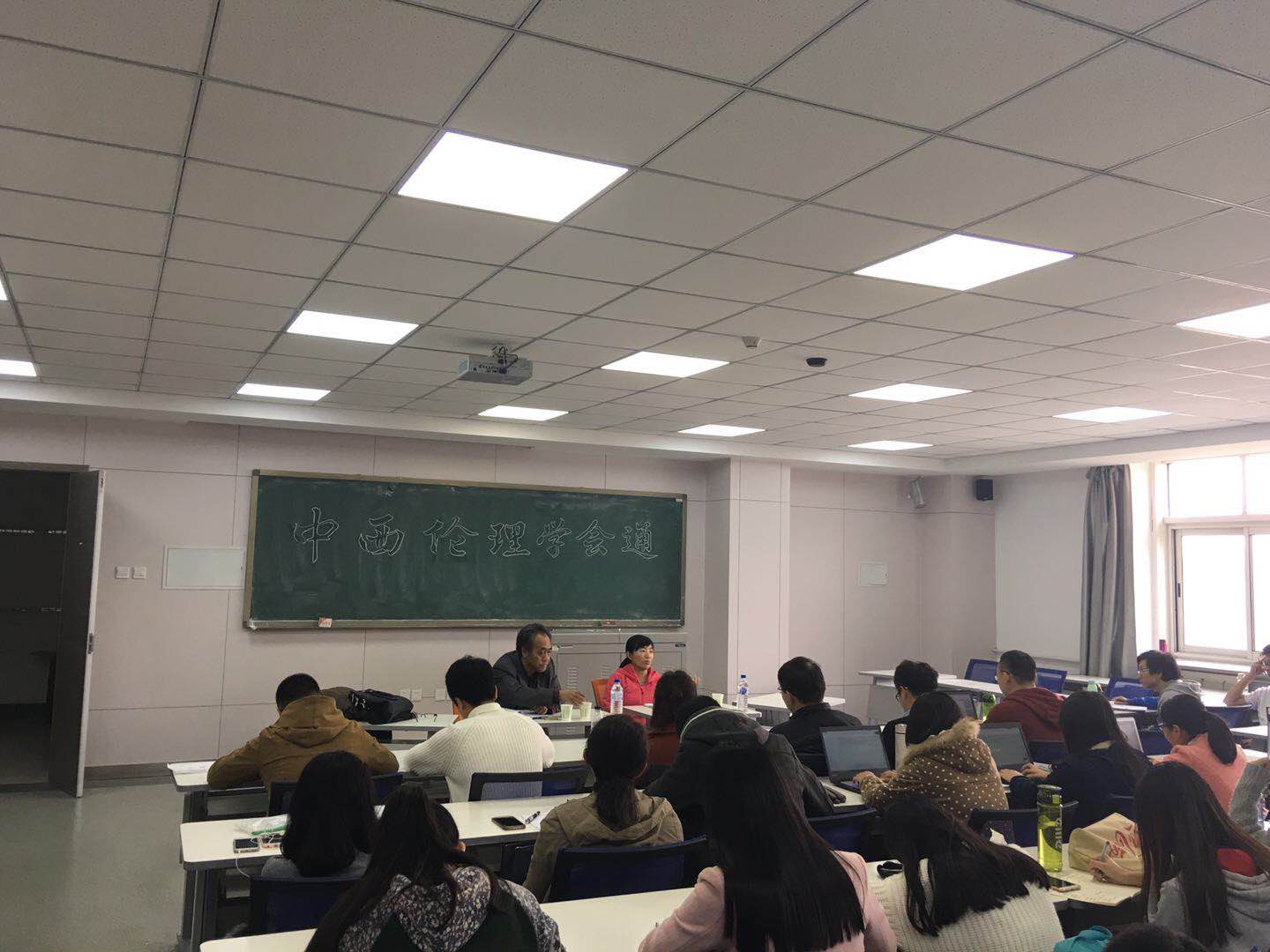 为拓宽同学们的学术视野,给同学们提供一个与哲学名师交流思想的机会,由304永利集团员工会学习部主办的名师讲座于10月28日上午九时三十分在第三教学楼313教室成功举行。讲坛采取新颖的对话形式,以中国传统伦理思想与伦理学、西方伦理学之间典范的差异与会通为题,邀请了分属这两个研究领域的哲学系教授刘连朋老师和曲红梅老师作为主讲进行分析,同时参与活动的还有来自多个专业的同学们。