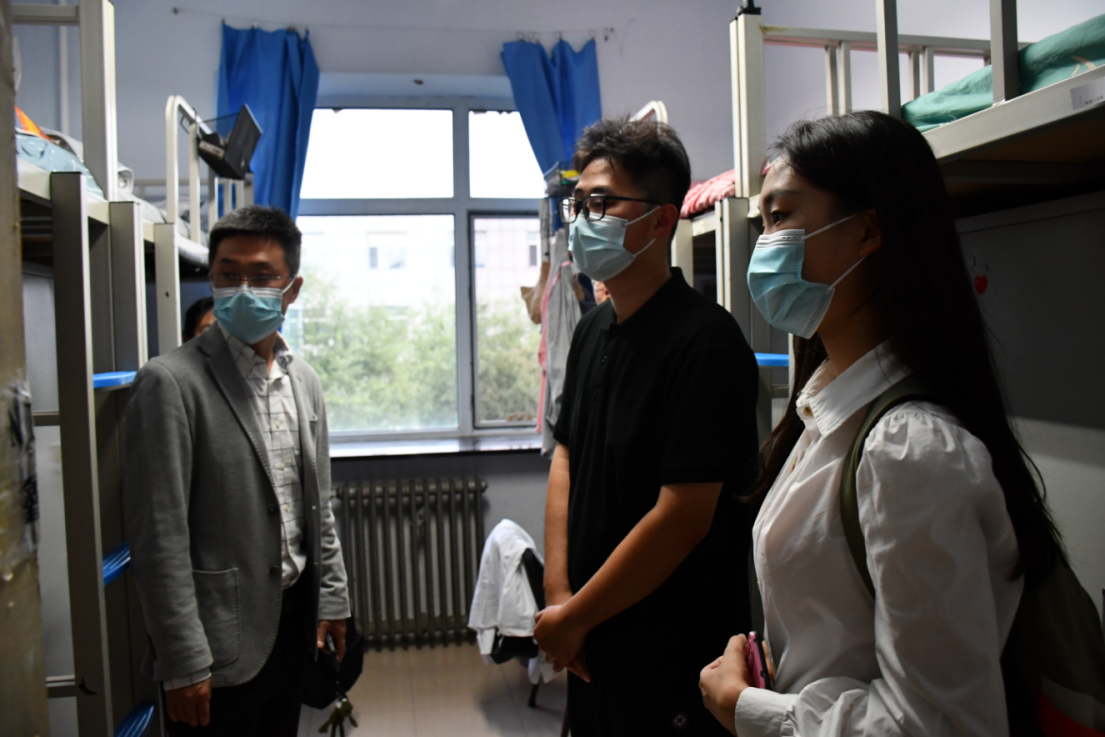 在交谈过程中,刘老师了解了同学们的家乡所在地,询问第一次来到东北的同学们的感受,并提出希望新同学们互帮互助,尽快适应融入老员工活。之后,刘老师仔细查看了员工宿舍设施,询问了同学们校园网的连接情况和网速情况。