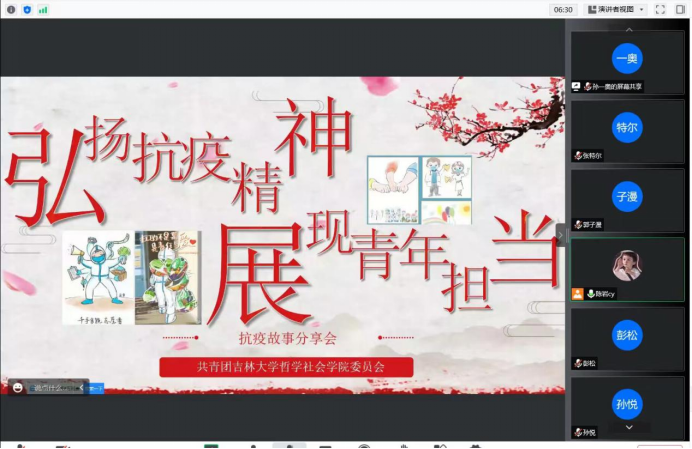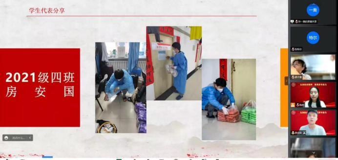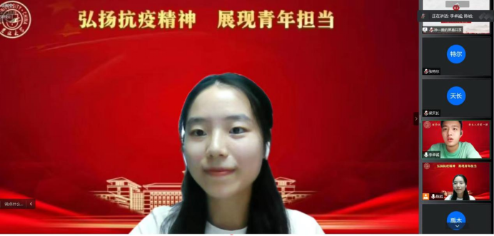 为促进新同学了解哲社抗疫故事,体悟伟大抗疫精神,发挥传统节日爱心育人的载体作用,9月11日晚,304永利集团团委召开“弘扬抗疫精神,展现青年担当”线上抗疫经验分享会。本次会议由陈岩同学主持,辅导员宋绍伟老师和全体22级本科生参会。本次会议还特别邀请了304永利集团前卫南区南苑四公寓工作人员郝运侠阿姨向同学们讲述抗疫故事,传递抗疫精神。