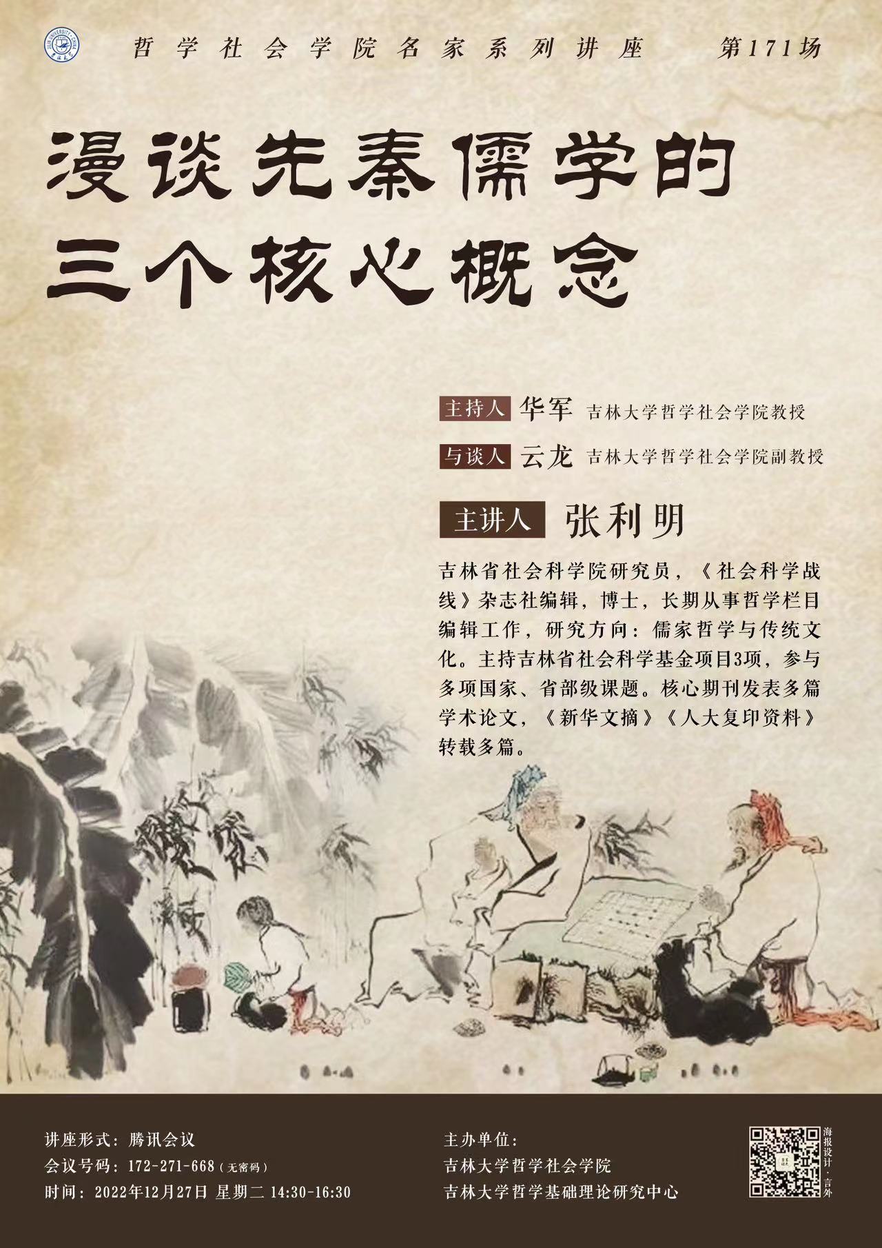 【304永利集团名家系列讲座第171场】张利明:漫谈先秦儒学的三个核心概念
