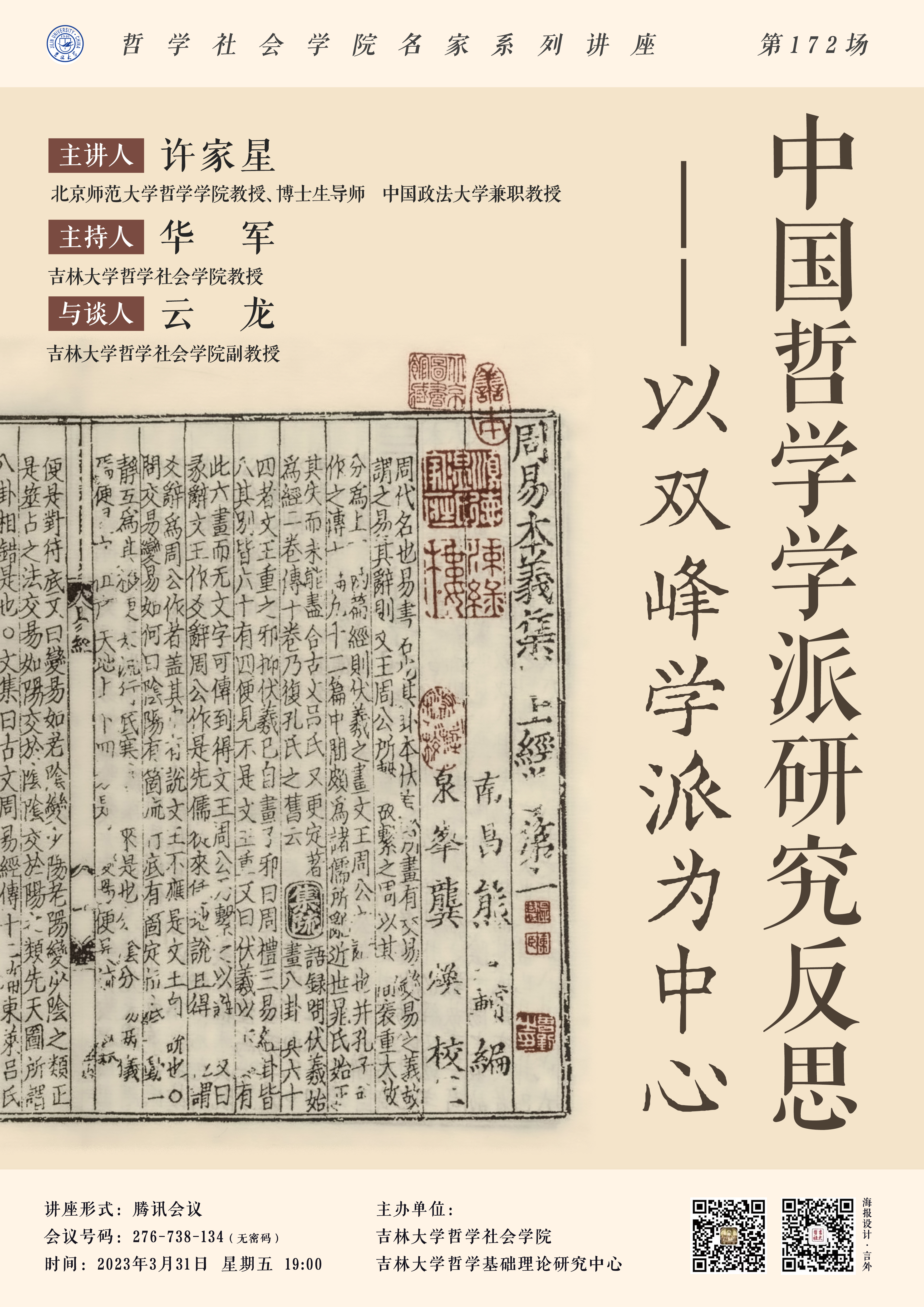 【304永利集团名家系列讲座第172场】许家星:中国哲学学派研究反思——以双峰学派为中心