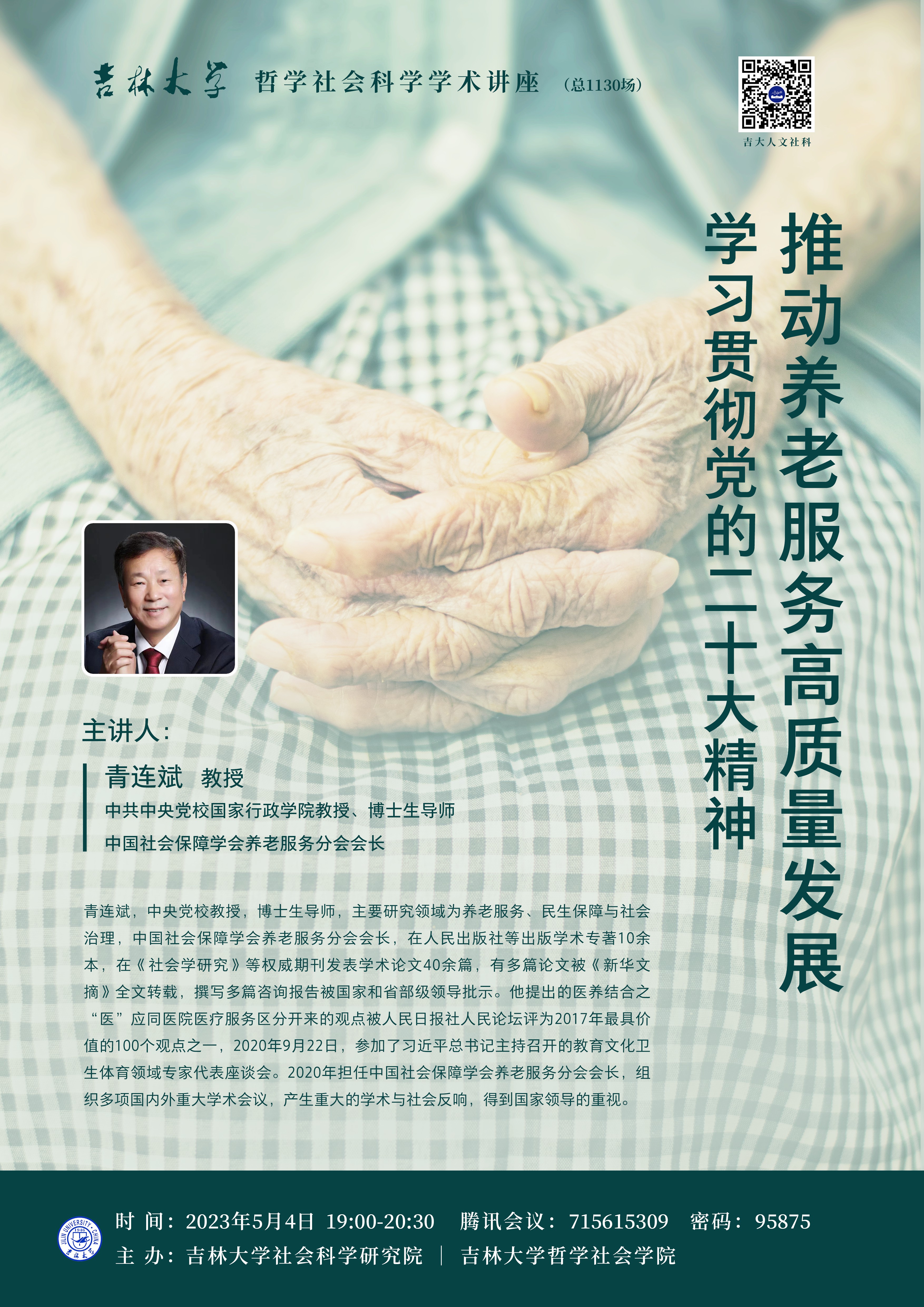 304永利集团哲学社会科学学术讲座(总1130场)青连斌:推动养老服务高质量发展——学习贯彻党的二十大精神
