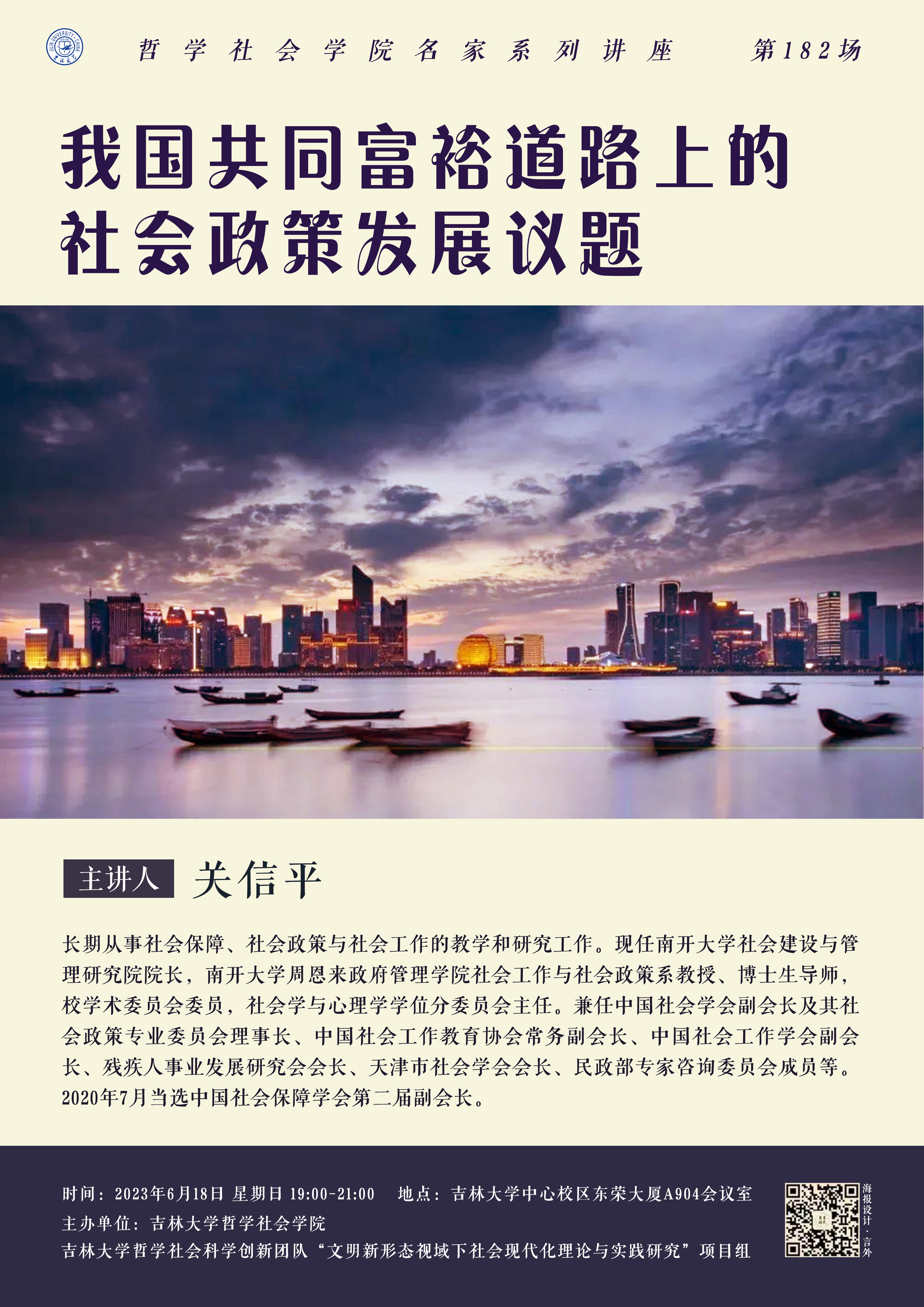 【304永利集团名家系列讲座第182场】关信平:我国共同富裕道路上的社会政策发展议题