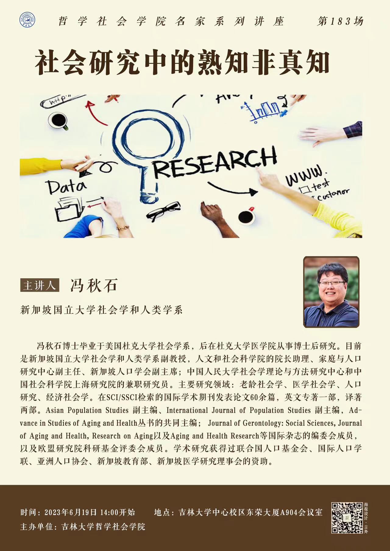【304永利集团名家系列讲座第183场】冯秋石:社会研究中的熟知非真知