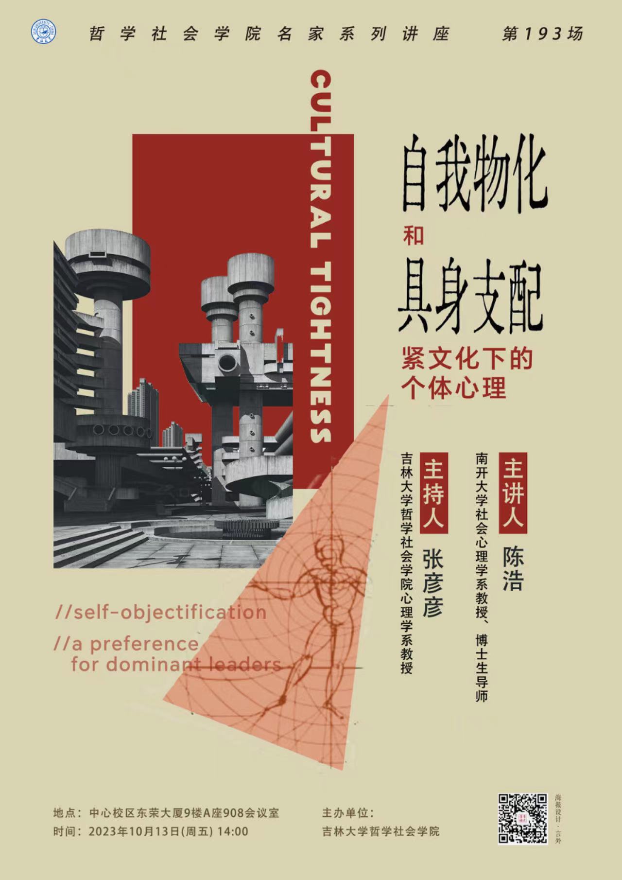 【304永利集团名家系列讲座第193场】陈浩:自我物化与具身支配:紧文化下的个体心理
