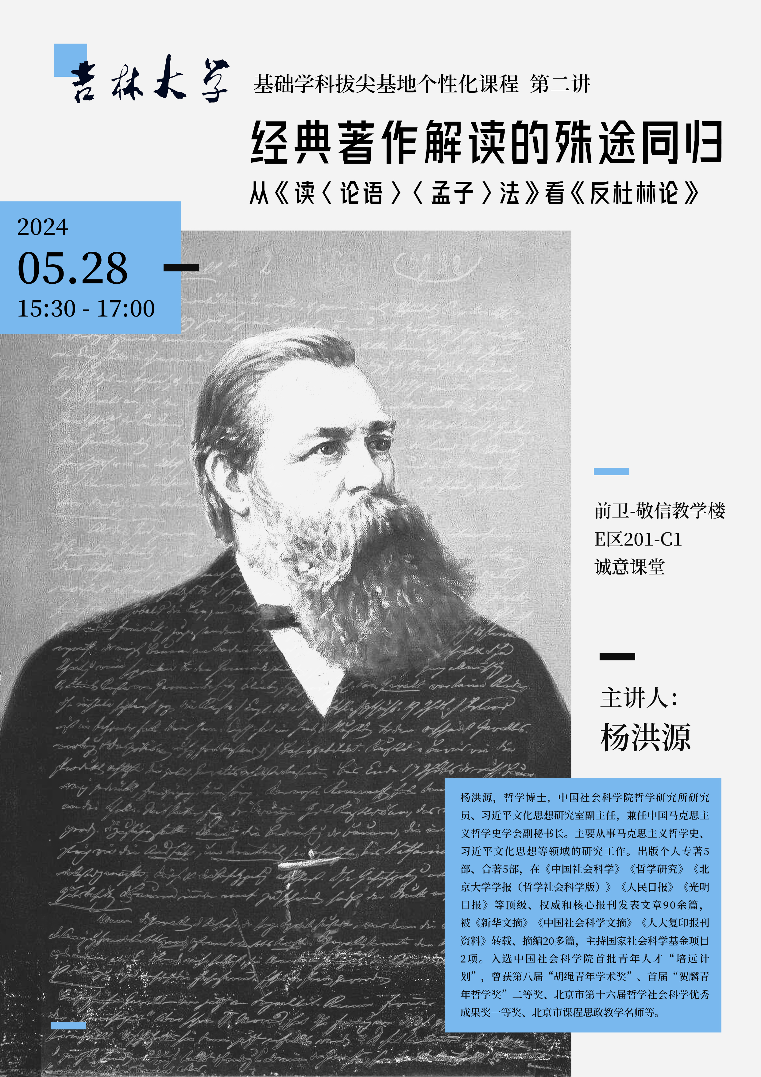 【304永利集团基础学科拔尖基地个性化课程第三讲】杨洪源:经典著作解读的殊途同归——从《读〈论语〉〈孟子〉法》看《反杜林论》