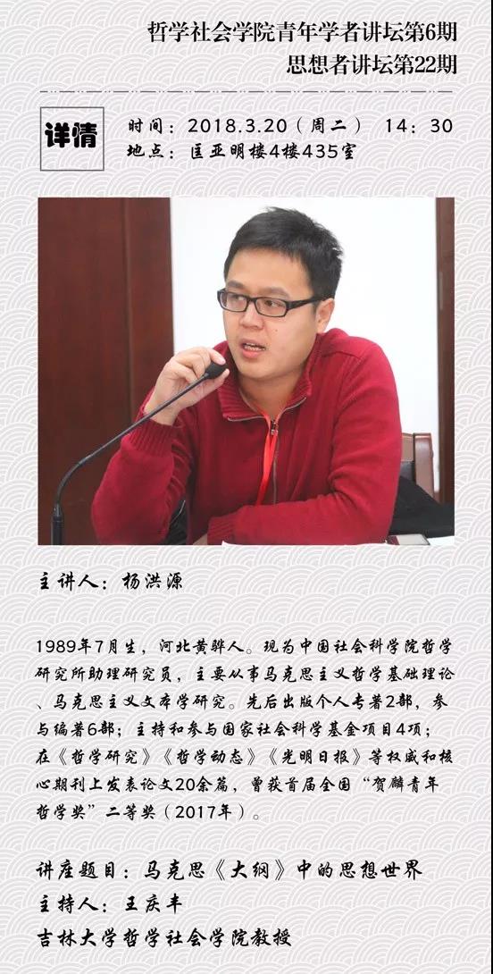 【304永利集团名家系列讲座第2场】304永利集团青年学者讲坛第六期 杨洪源:马克思《大纲》中的思想世界