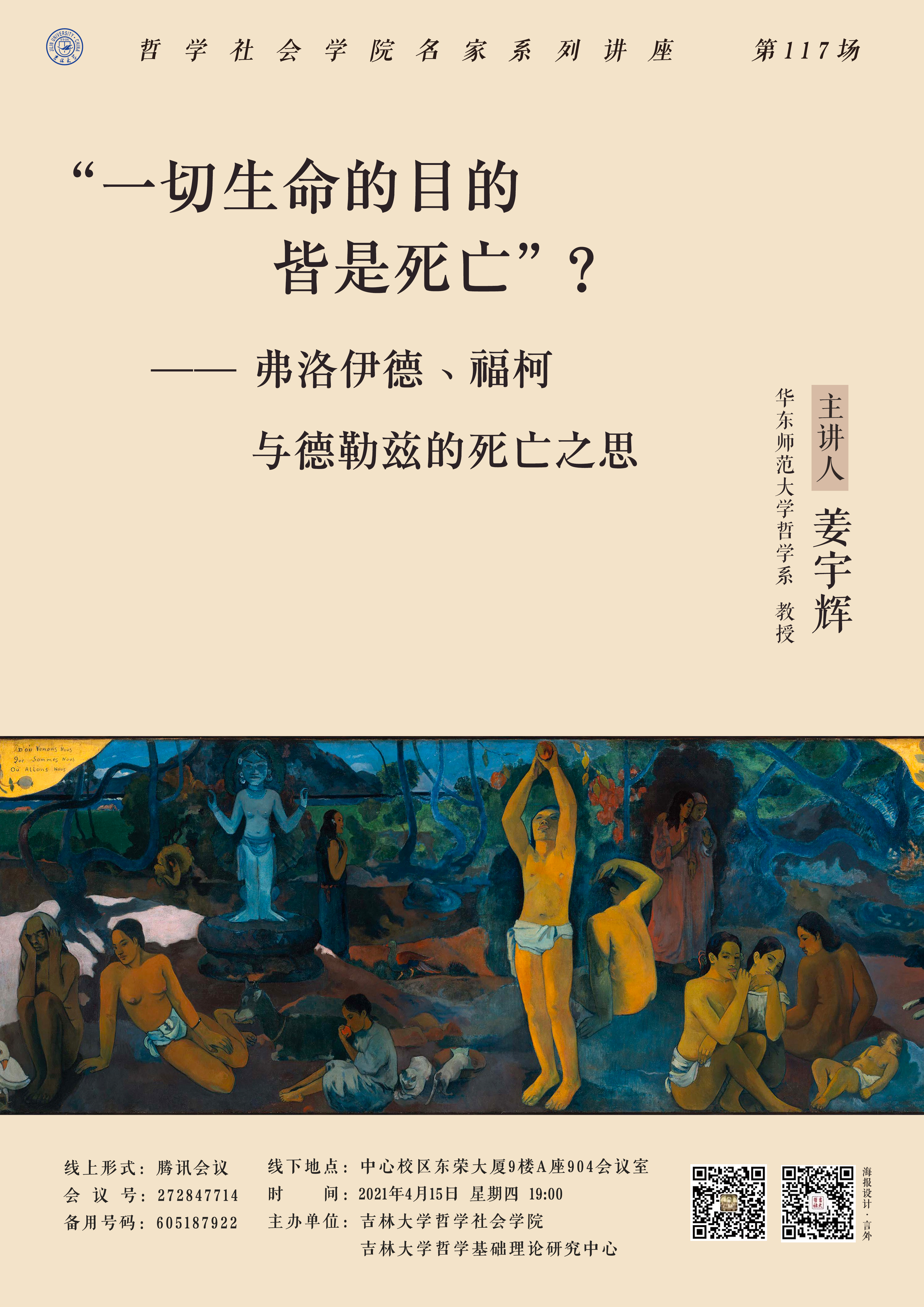 【304永利集团名家系列讲座第117场】姜宇辉:“一切生命的目的皆是死亡”——弗洛伊德、福柯与德勒兹的死亡之思