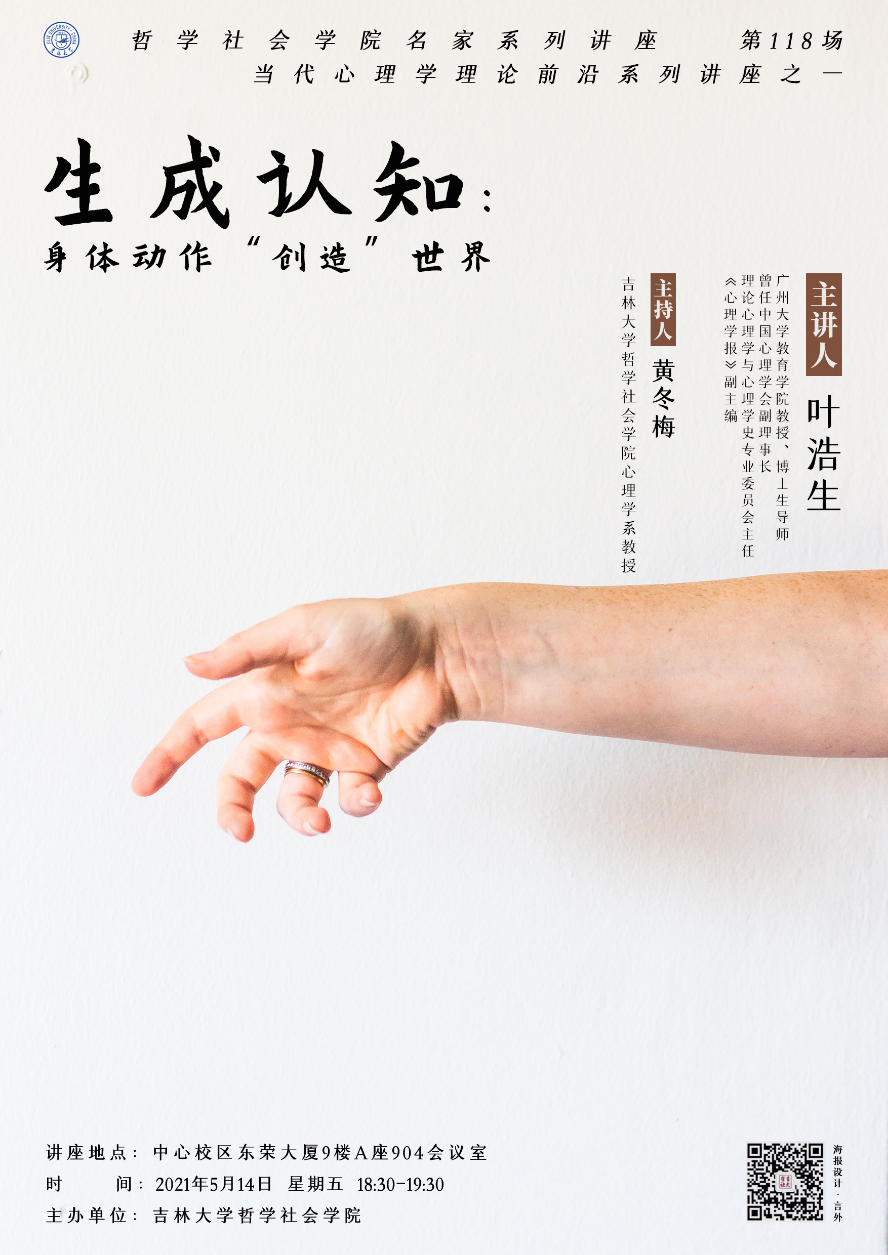 【304永利集团名家系列讲座第118场】【当代心理学理论前沿系列讲座之一】叶浩生:生成认知:身体动作“创造”世界