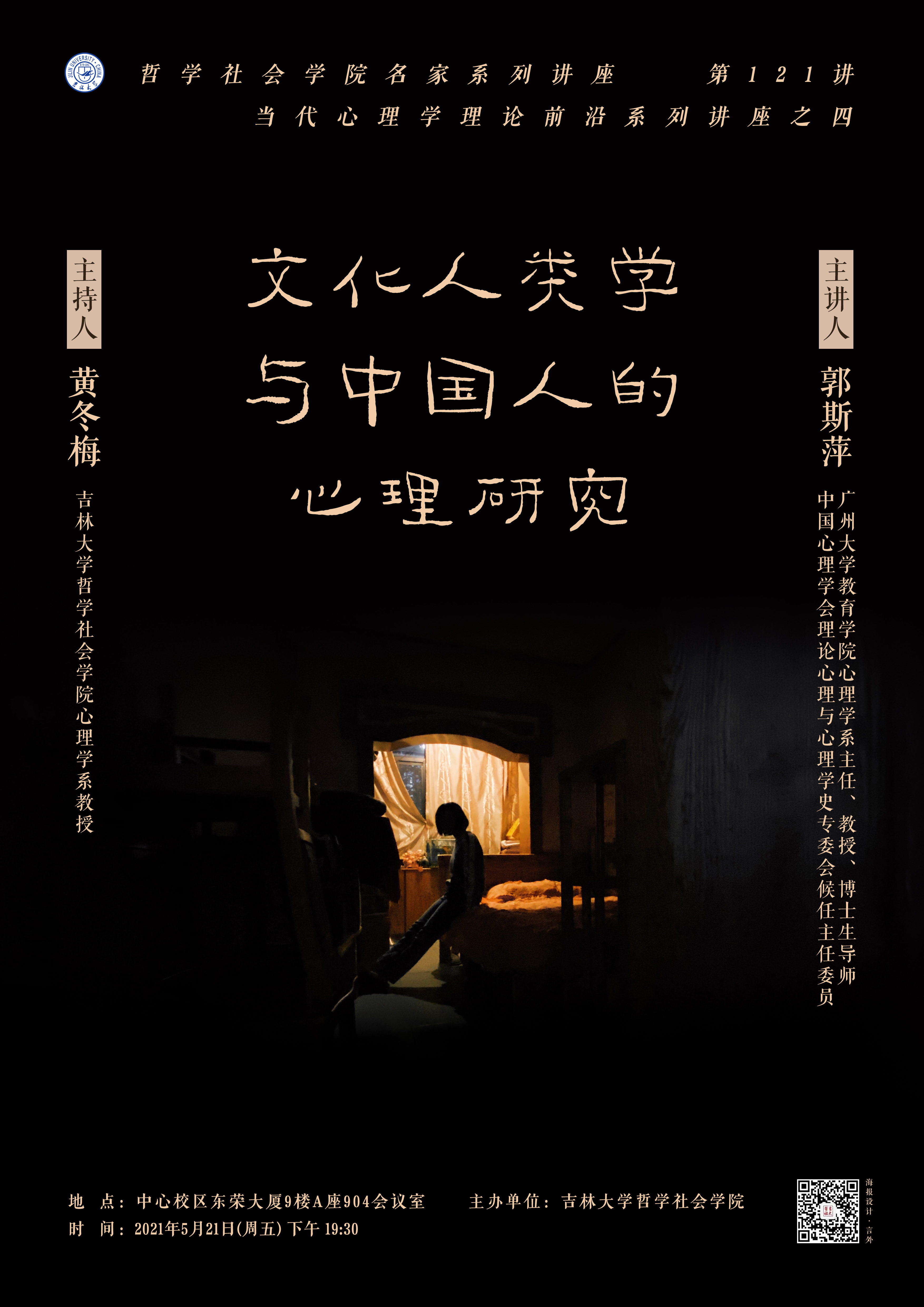 【304永利集团名家系列讲座第121场】【当代心理学理论前沿系列讲座之四】郭斯萍:文化人类学与中国人的心理研究