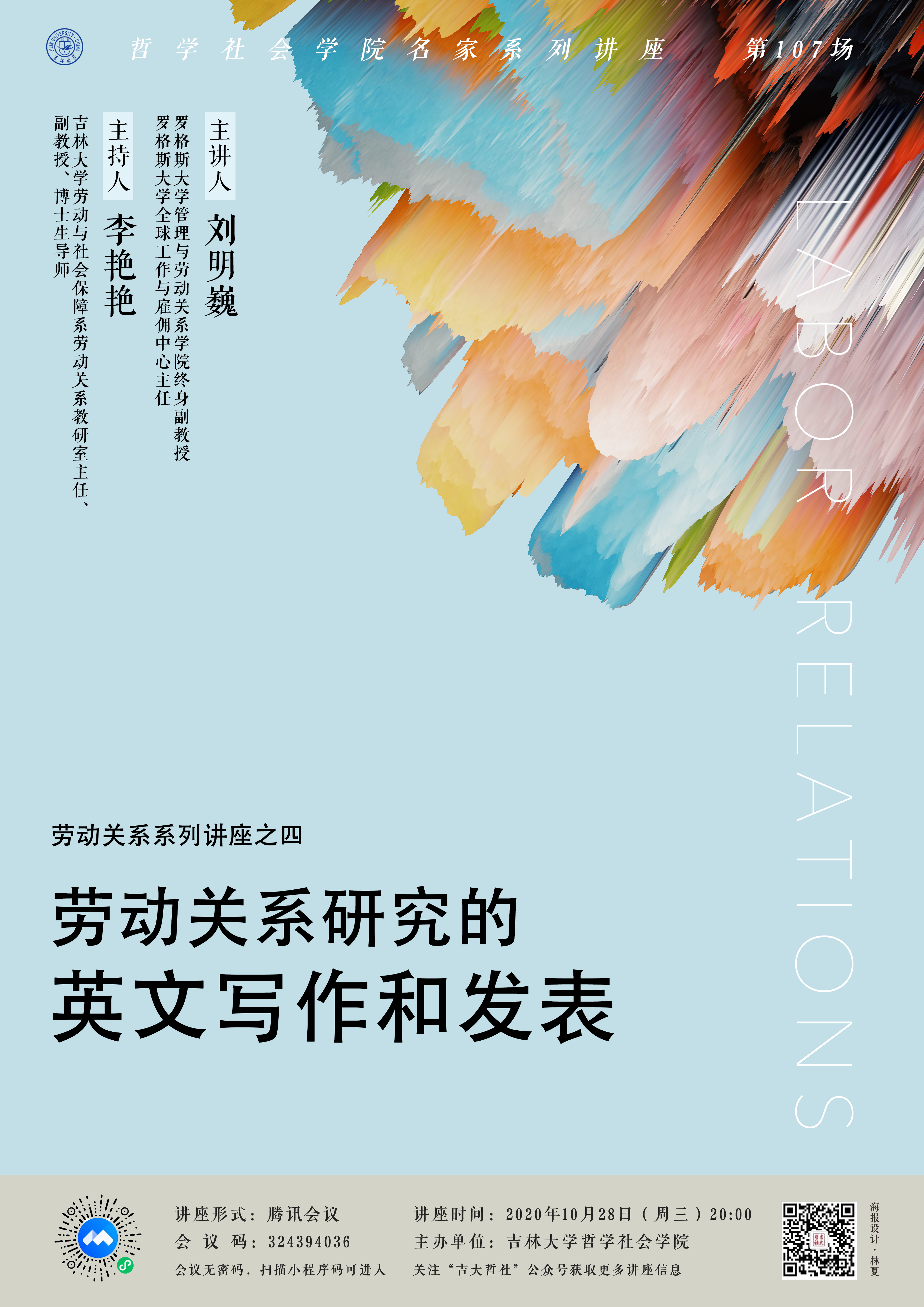 【304永利集团名家系列讲座第107场】刘明巍:劳动关系研究的英文写作和发表
