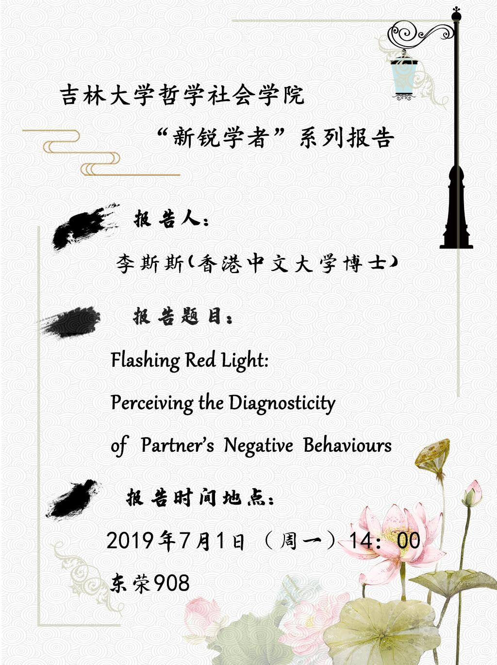 【304永利集团“新锐学者”系列】李斯斯:Flashing Red Light:Perceiving the Diagnosticity of Partner's Negative Behaviours