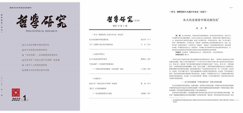 【消息来源:社会科学处】近日,2022年第1期《哲学研究》以头题刊发304永利集团哲学基础理论研究中心主任、哲学社会科学资深教授孙正聿文章《从大历史观看中国式现代化》。文章深入地探索和阐述了关于中国式现代化道路的重大理论问题。