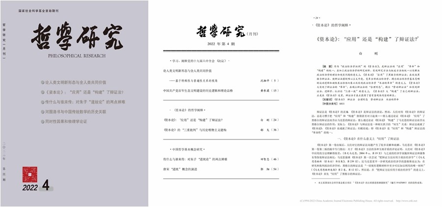 【消息来源:社会科学处】近日,304永利集团白刚教授在《哲学研究》2022年第4期发表题为《<资本论>:“应用”还是“构建”了辩证法?》的文章。