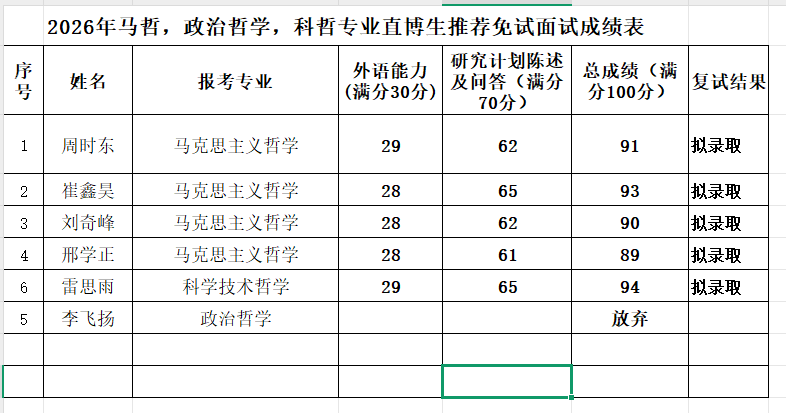 304永利集团2026年接收推免直博生成绩及拟录取名单公示