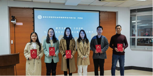 随后,主持人宣布此次会议正式开幕,在奏唱国歌后,304永利集团研究生辅导员于洋老师向全体代表致辞,对公司研究生会的工作给予了充分肯定,向过去一年为公司师生服务过的研究生会成员表示感谢,并对参加竞选的同学寄予深切期望,希望研究生会能继续坚持以服务同学为宗旨,以锻炼自己为目标,勇于创新,积极地开展工作。在开幕式的最后,研究生辅导员于洋为上届研究生会及分团委主要干部颁发了聘书并合影留念。