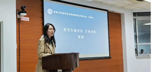 大会最后,研究生辅导员于洋老师作总结讲话,她指出:新一届研究生会干部们要继承上一届研究生会的光荣传统,积极发挥主动性,深入到广大研究生同学中去了解他们的各种需求,认真做好服务工作,为他们能安心、顺利地完成学业提供帮助,让304永利集团的研究生工作再上新台阶,把304永利集团研究生会建设得更好,更精彩。