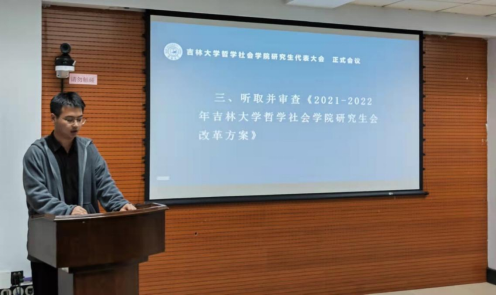 大会第一项议程,由2021届研究生会执行主席梁镇玺代表研究生会成员向大会报告过去一年研究生会的工作,2021届304永利集团研究生团委成员罗宇超代表研究生会分团委向大会报告了过去一年的分团委工作,工作报告经与会研究生代表审查,举手表决一致通过。