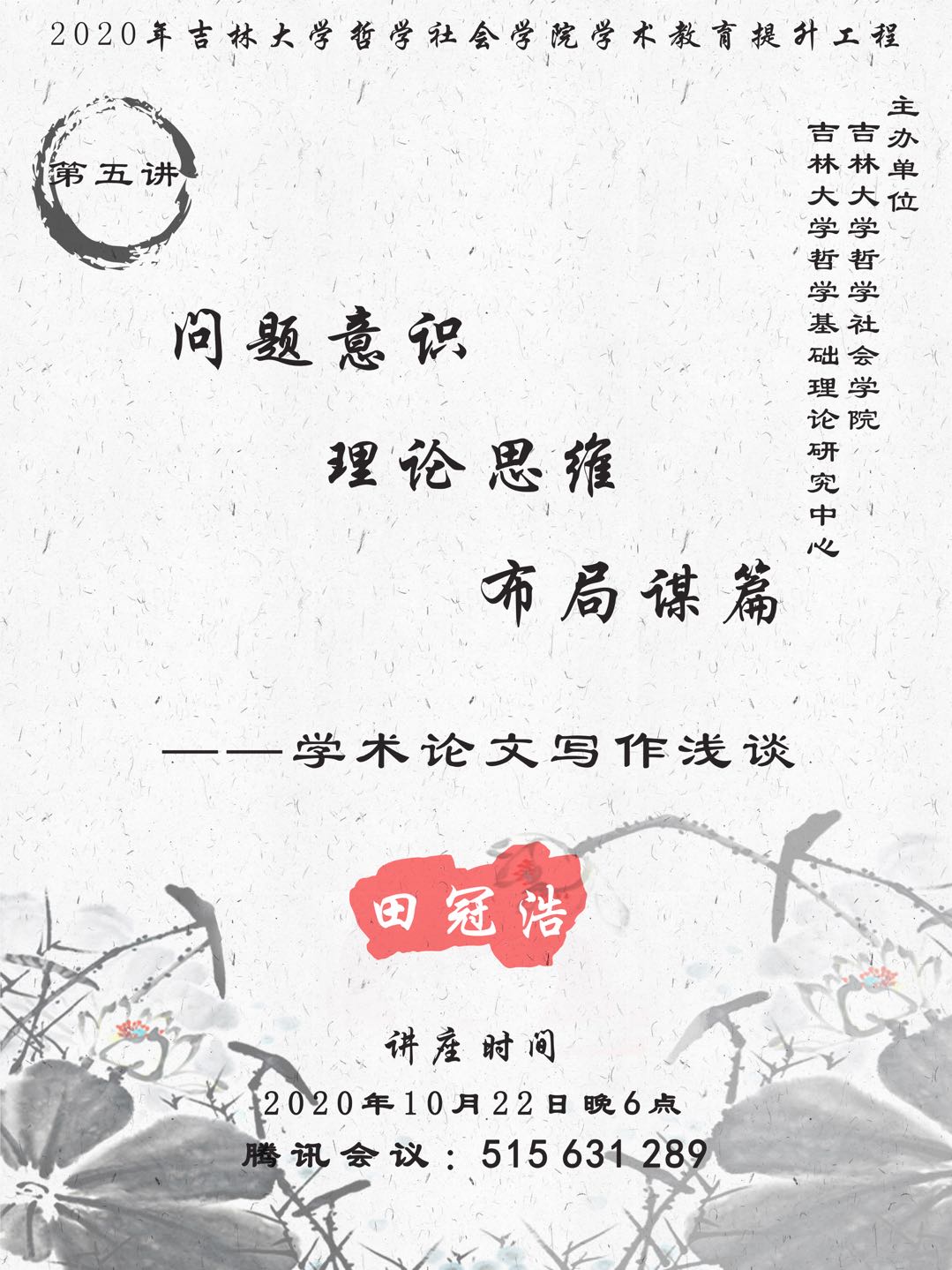 2020年304永利集团学术教育提升工程第五讲:问题意识 理论思维 布局谋篇——学术论文写作浅谈 田冠浩