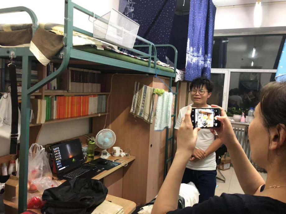 (图为领导、老师走访南苑五公寓新生寝室 摄影:郭天竹)
