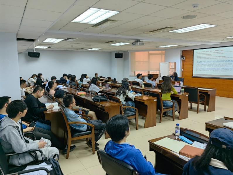 夏老师的讲解旁征博引、由浅入深,气势恢宏,会通中西,引领听众们畅游当代生命技术哲学的星辰大海。在夏可君老师激情洋溢的讲解中,讲座很快接近尾声。龙晶、云龙两位老师就他们各自关心的问题与夏老师进行了热烈的对谈。与会同学踊跃提问,夏老师一一给予了耐心细致的回应。本次讲座在热烈的掌声中圆满结束。