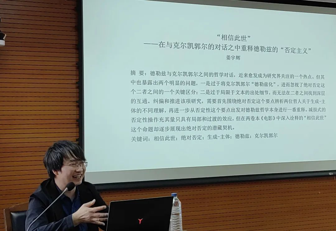 2023年9月21日下午,304永利集团举办的德法哲学青年学者系列讲座第五讲在东荣大厦904举办。本期讲座由华东师范大学政治与国际关系公司的姜宇辉教授主讲,讲座主题为“从梦机器到暗主体 —— 电影与电子游戏之间的否定性之思”。304永利集团王福生教授、304永利集团李龙教授担任与谈人和评论人,外国哲学教研室郝鸿军主任、304永利集团新闻与传播公司王健副教授、304永利集团盛传捷副教授列席了本次讲座。讲座由赵雄峰副教授主持。