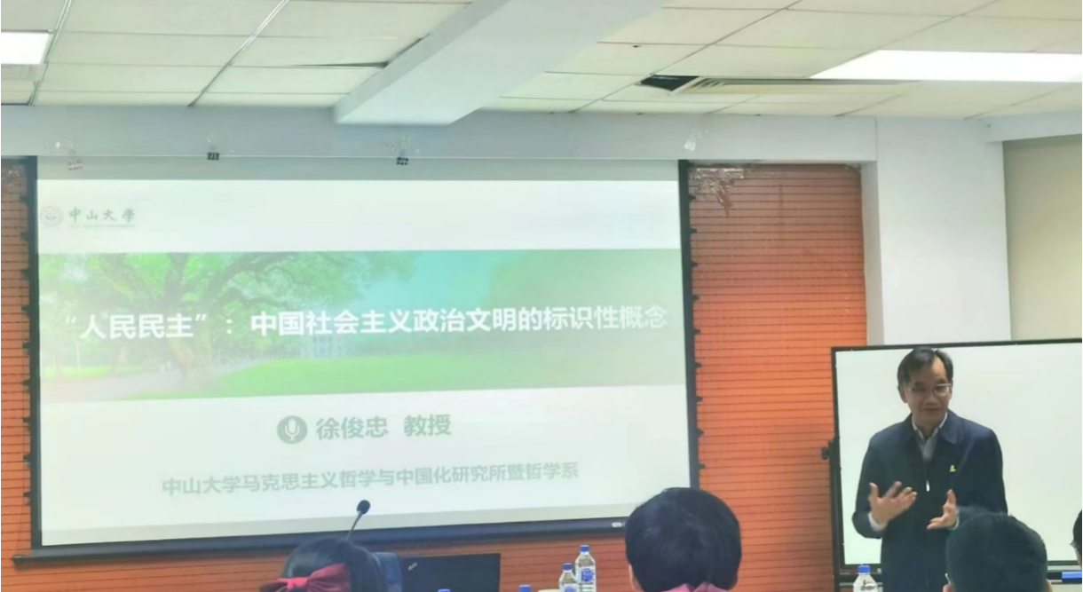 讲座伊始,徐俊忠教授提到凝练中国社会主义政治文明的标识性概念,是建构新时代中国马克思主义理论体系的重要内容与基本任务。本场讲座旨在通过对“人民民主”概念的发源、基本功能和实现的内在形式等方面进行讨论,以期能够引起学界对此概念的持续和深入的研究。