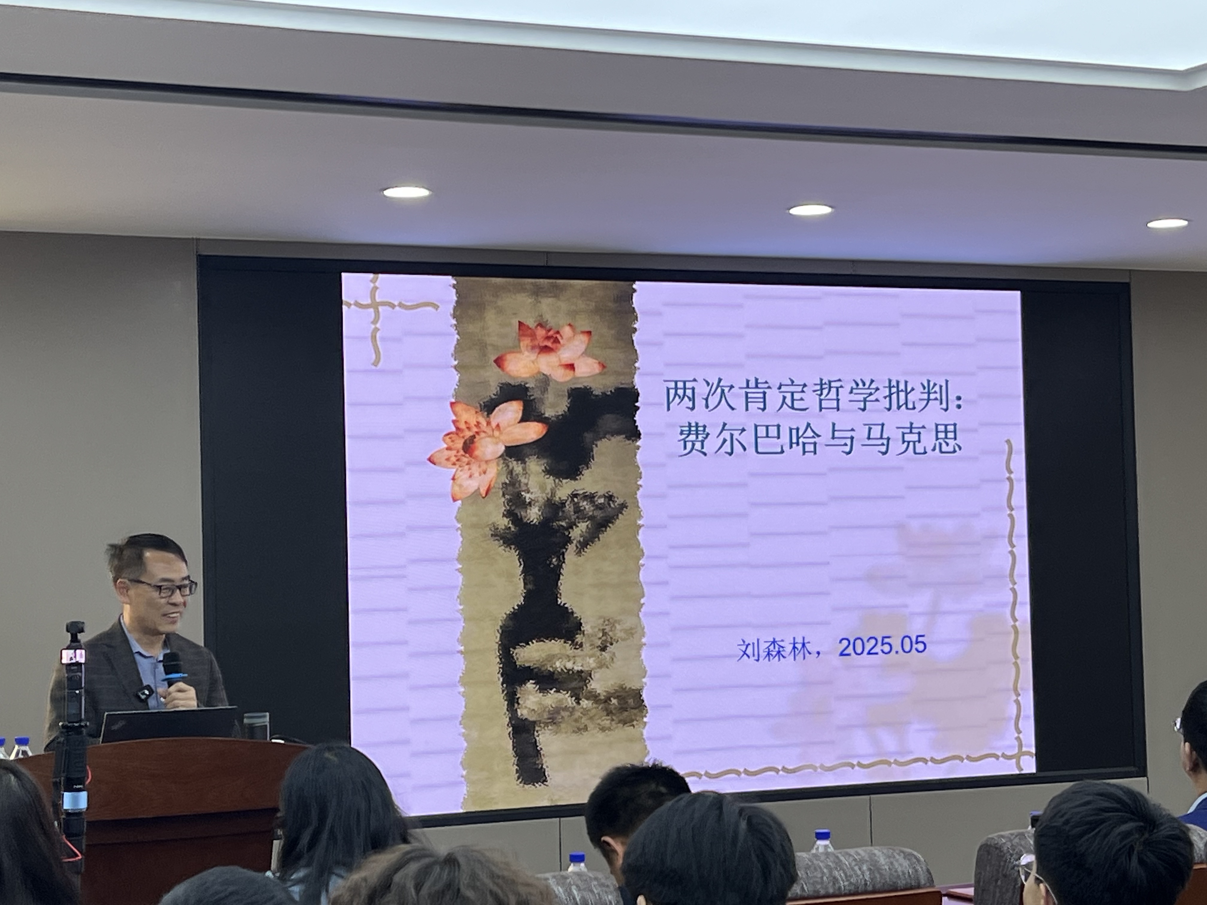刘森林教授以“费尔巴哈的唯物主义从何而来”为切入点展开了本次讲座。在刘老师看来,现有的关于费尔巴哈思想渊源的研究都回避或忽视了费尔巴哈与谢林的关系,费尔巴哈的唯物主义绝不是开天辟地、惊天一呼、横空出世之事,在阅读了谢林爱尔兰根讲座后撰写的《肯定哲学批判》昭示了费尔巴哈思想转变的缘由。刘老师从三个方面论证了费尔巴哈如何在批判谢林肯定哲学的基础上,提出了自己的“新”哲学——“新的唯一的肯定哲学”。其一,费尔巴哈批判谢林调和宗教和哲学,而不是以哲学揭示宗教的秘密。其二,在费尔巴哈看来,谢林的肯定哲学没有把感性原则贯彻到底,而他本人理解的肯定哲学应该是基于感性、经验、生成、身体、自然等原则重构哲学,而不是把它们限制在传统理性的框架之内。其三,费尔巴哈批判谢林的肯定哲学面临容易走向主观任意的危险。刘老师揭示了马克思在研读过《肯定哲学批判》后,发现了提出肯定哲学的谢林才是批判黑格尔哲学的第一人,费尔巴哈是在谢林批判的基础上进一步批判黑格尔的。抛开了谢林先验哲学,只保留自然哲学的费尔巴哈丧失了德国古典哲学最重要的成就——主体性立场。对于马克思来说,只有把主体性立场和实证性立场内在结合起来,从而进一步把理论哲学与实践哲学统一起来,才能形成新的实践唯物主义。最后,刘老师指出费尔巴哈对肯定哲学的批判对于马克思只是起了一种“中介性”的作用,促使马克思进一步知晓晚期谢林对黑格尔的批判,并把这种批判吸收和延展到自己终生对黑格尔的批判超越之中。马克思没有完全接受费尔巴哈的谢林批判,没有接受撇开否定哲学径直按照肯定哲学之路激进推进的路子,而是在肯定哲学强调的感性、经验、情感、欲望等原则与否定哲学强调的普遍本质、必然规律之间的结合中探寻新的融合之道。