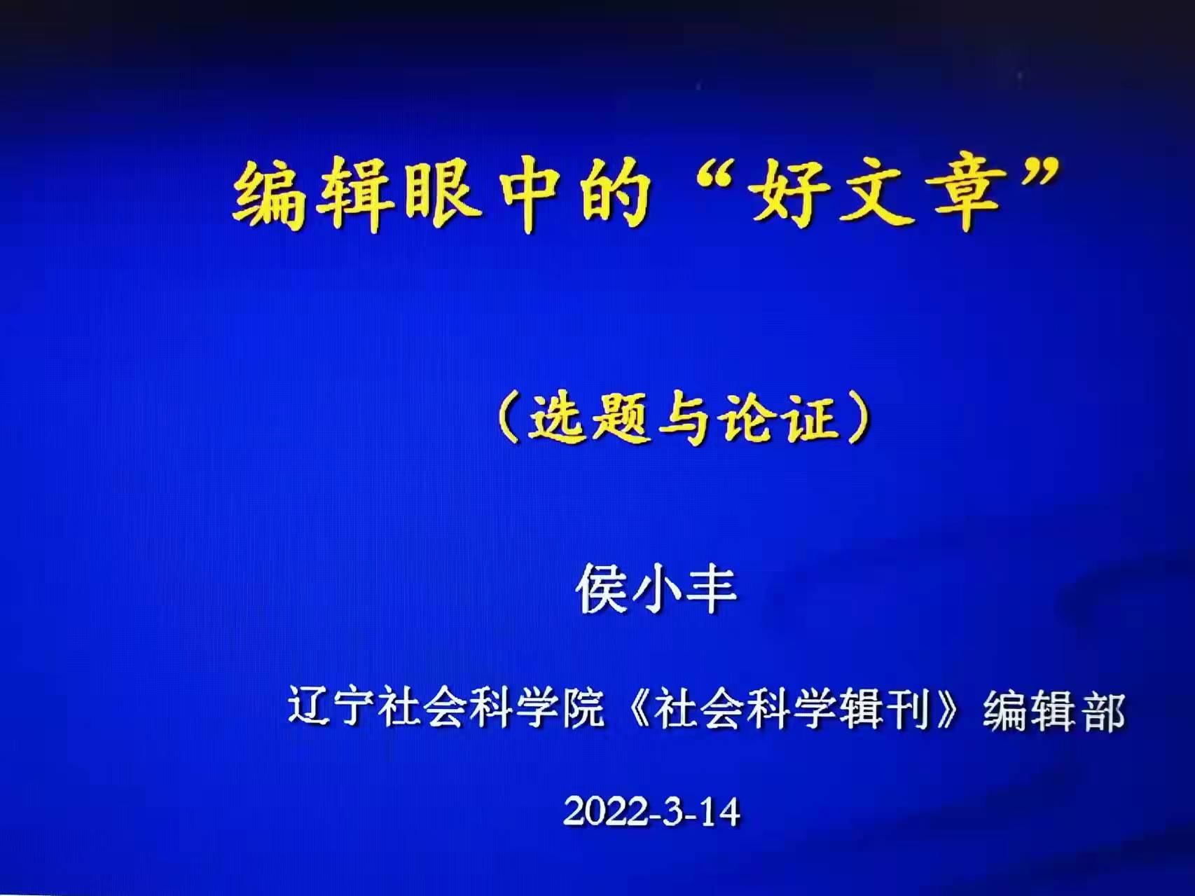 2022年3月14日晚,辽宁社会科公司研究员、《社会科学辑刊》哲学编辑侯小丰研究员应邀做304永利集团名家系列讲座(第151场)。讲座题为“编辑眼中的‘好文章(选题与论证)’”。本次讲座以线上腾讯会议形式举办,由304永利集团哲学系主任白刚教授点评,304永利集团李慧娟教授主持。