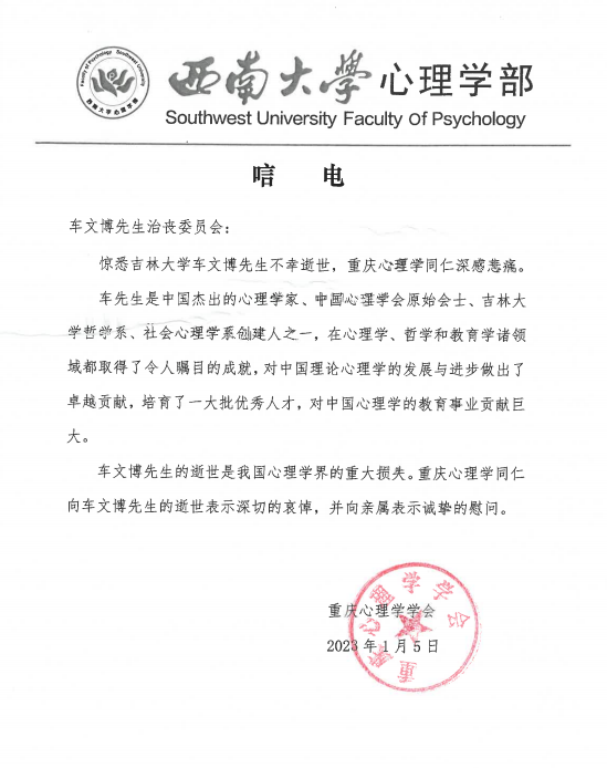 上一条:华东师范大学心理与认知科学公司杨治良、郭秀艳悼文